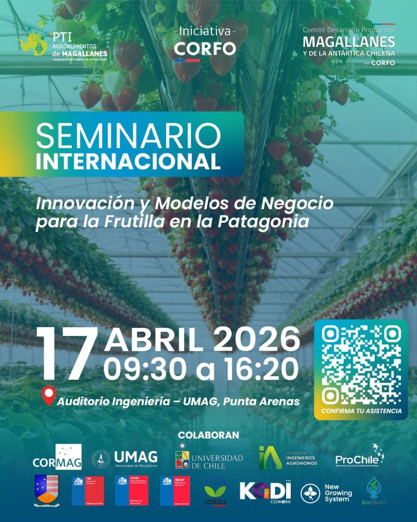 Con foco en la innovación, la sostenibilidad y el desarrollo productivo en zonas australes, el próximo viernes 17 de abril se realizará en Punta Arenas el Seminario Internacional “Innovación y Modelos de Negocio para la Frutilla en la Patagonia”, instancia que reunirá a expertos nacionales e internacionales, productores, académicos y actores clave del ecosistema agroalimentario.