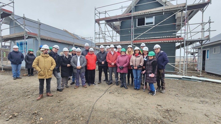 Este miércoles, el Seremi de Vivienda y Urbanismo, Marco Uribe Saldivia, guió una visita de avance de obras a la construcción del proyecto habitacional “Pioneros” en Cerro Sombrero, comuna de Primavera, en la que participó la comisión de infraestructura del Consejo Regional, presidida por el consejero por Tierra del Fuego, Rodolfo Cárdenas Alvarado, la Alcaldesa Karina Fernández Marín e integrantes del Concejo Municipal.