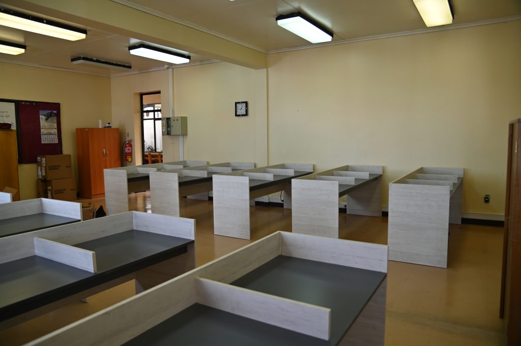 Se trata de obras de mantención las cuales consistieron en retirar el sistema eléctrico antiguo del laboratorio e instalar uno nuevo, con tablero auxiliar renovado, canalización y alimentación de electricidad para los distintos escritorios. También se confeccionaron 10 cubículos para 3 estudiantes, para que un total de 30 alumnos y alumnas puedan participar de una clase.